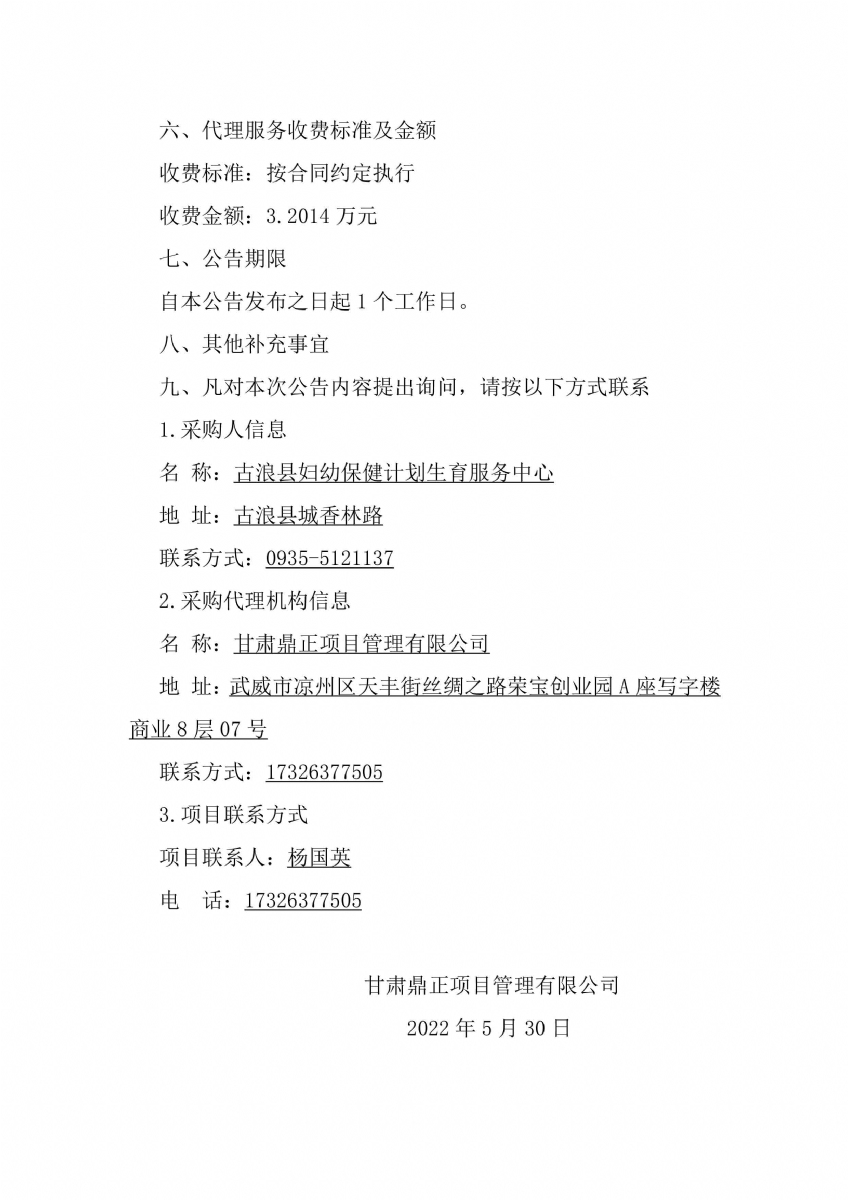 古浪縣婦幼保健計劃生育服務中心婦幼保健服務能力提升項目中標公告